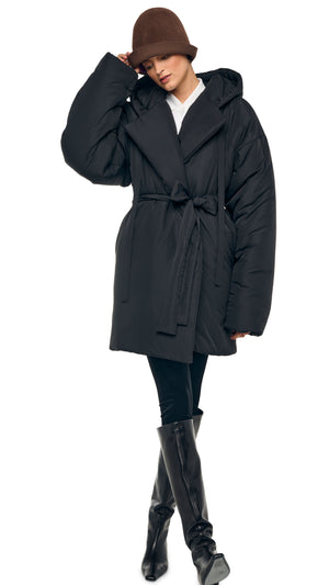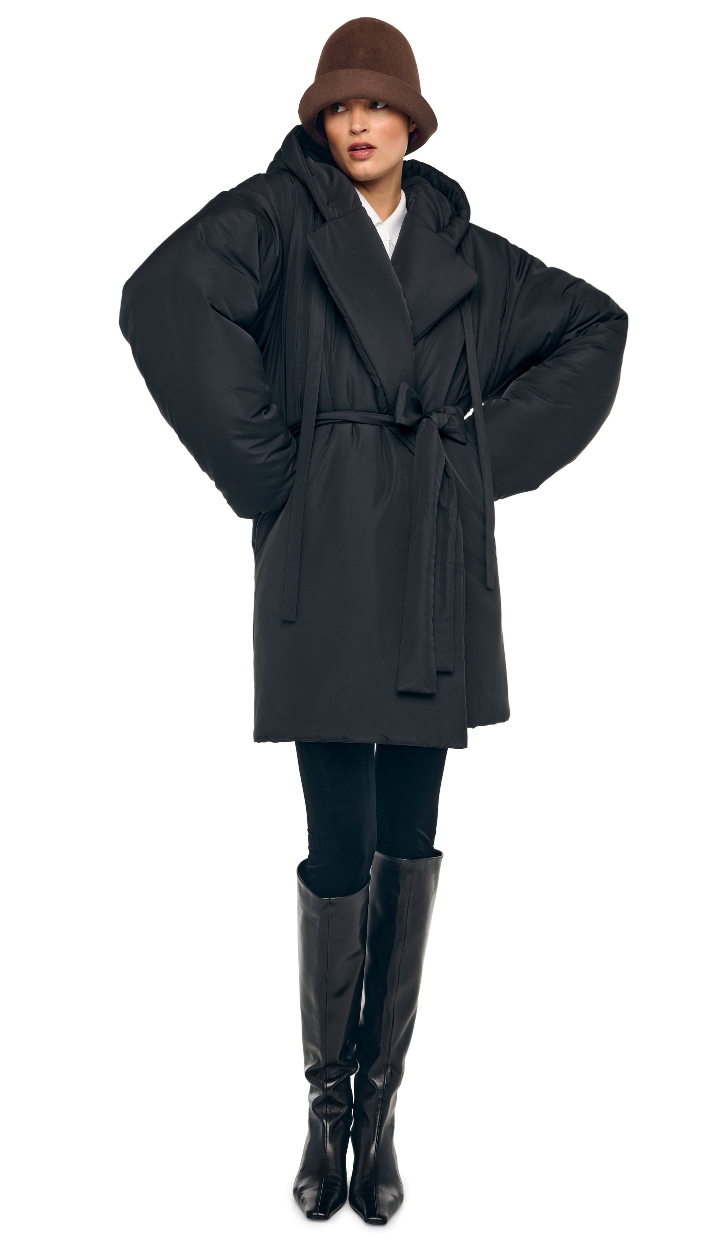 The Sleeping Bag Coat is one of the classic icons of the Norma Kamali brand. Originally designed in 1973, the Sleeping Bag Coat created a frenzy among fashion-hungry style seekers. It remains as relevant and chic today as it was back then. Using the NASA method for warmth, each coat is actually two coats sewn together with air pockets in between. Heat from the body exchanges with the cold from outside.