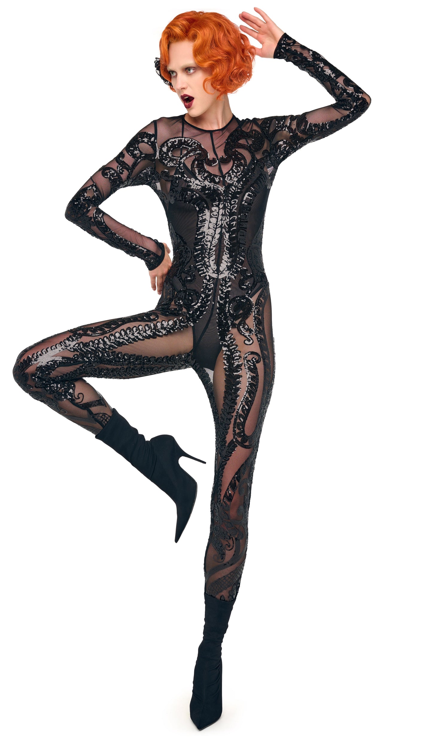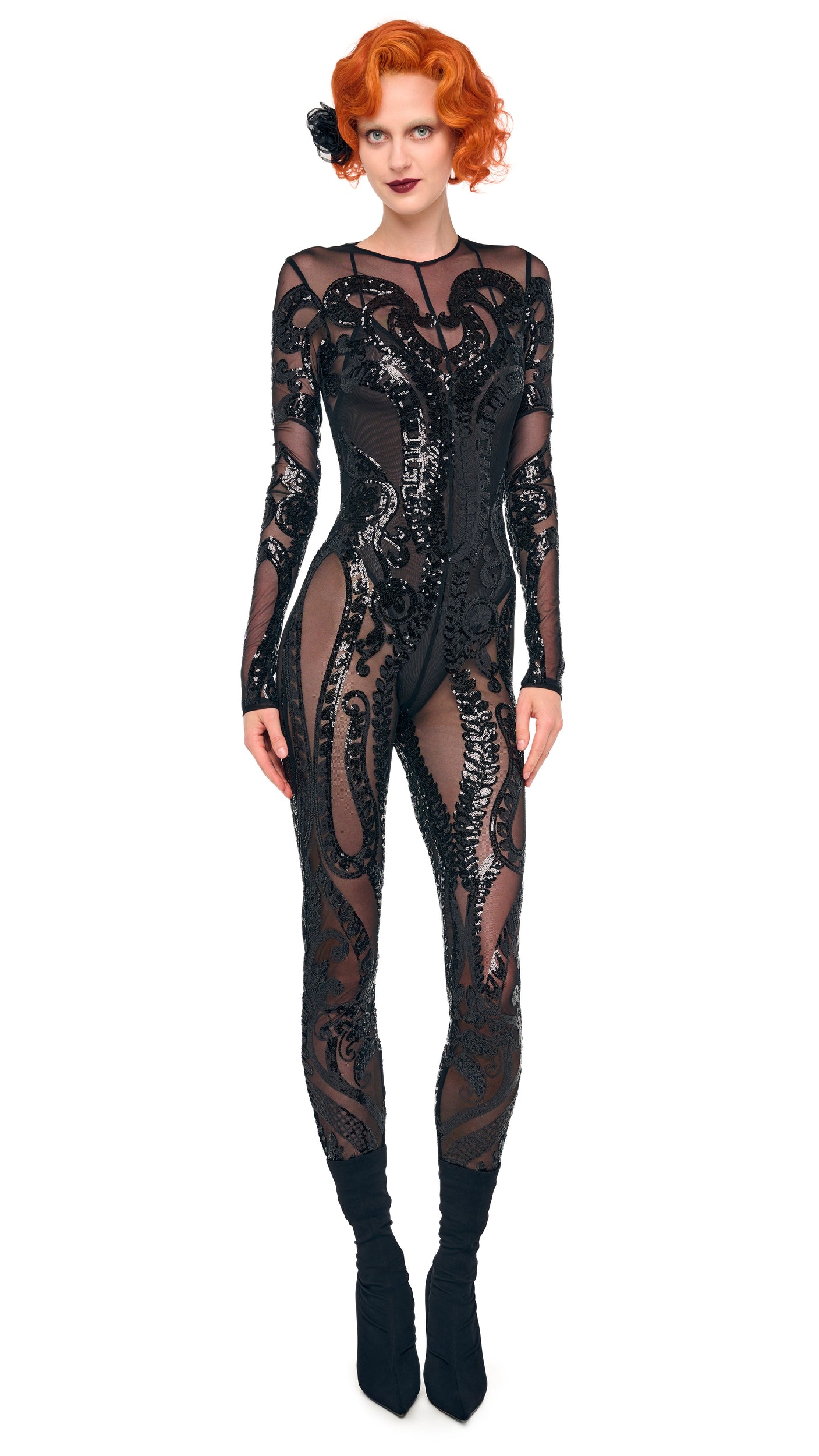 Nouveau Embroidery Sequin. Mesh Composition: 94% polyester 6% elastane