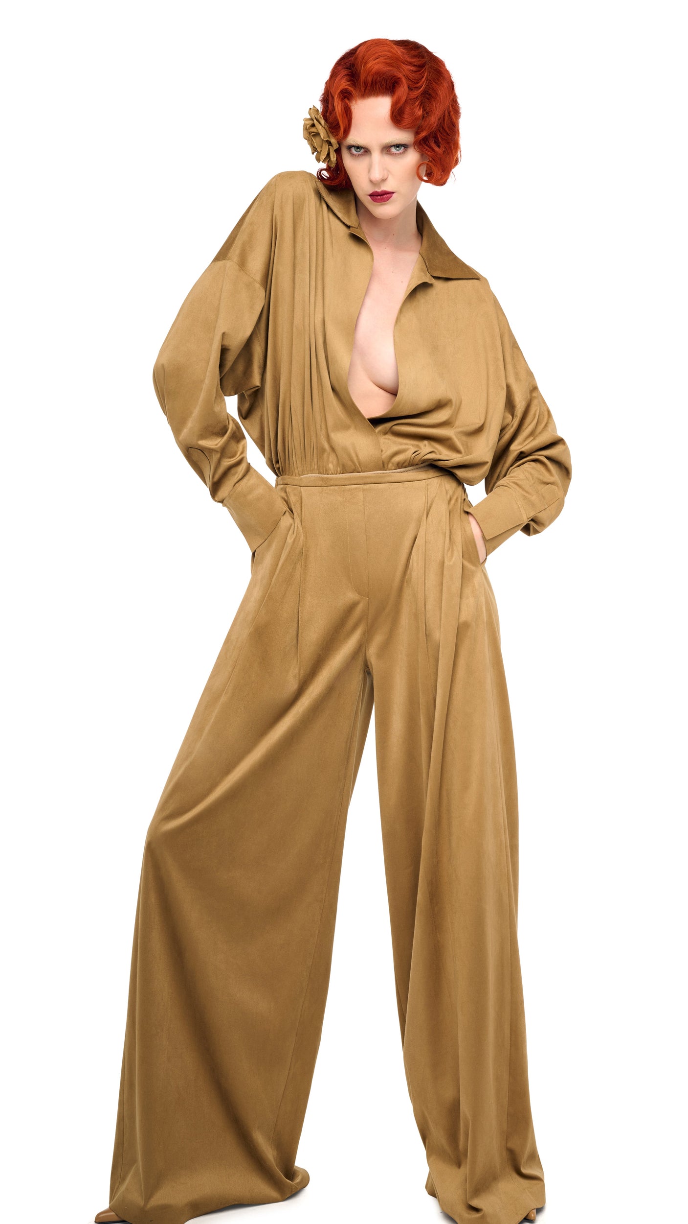 Vegan Suede.Composition: 93% polyester 7% spandex