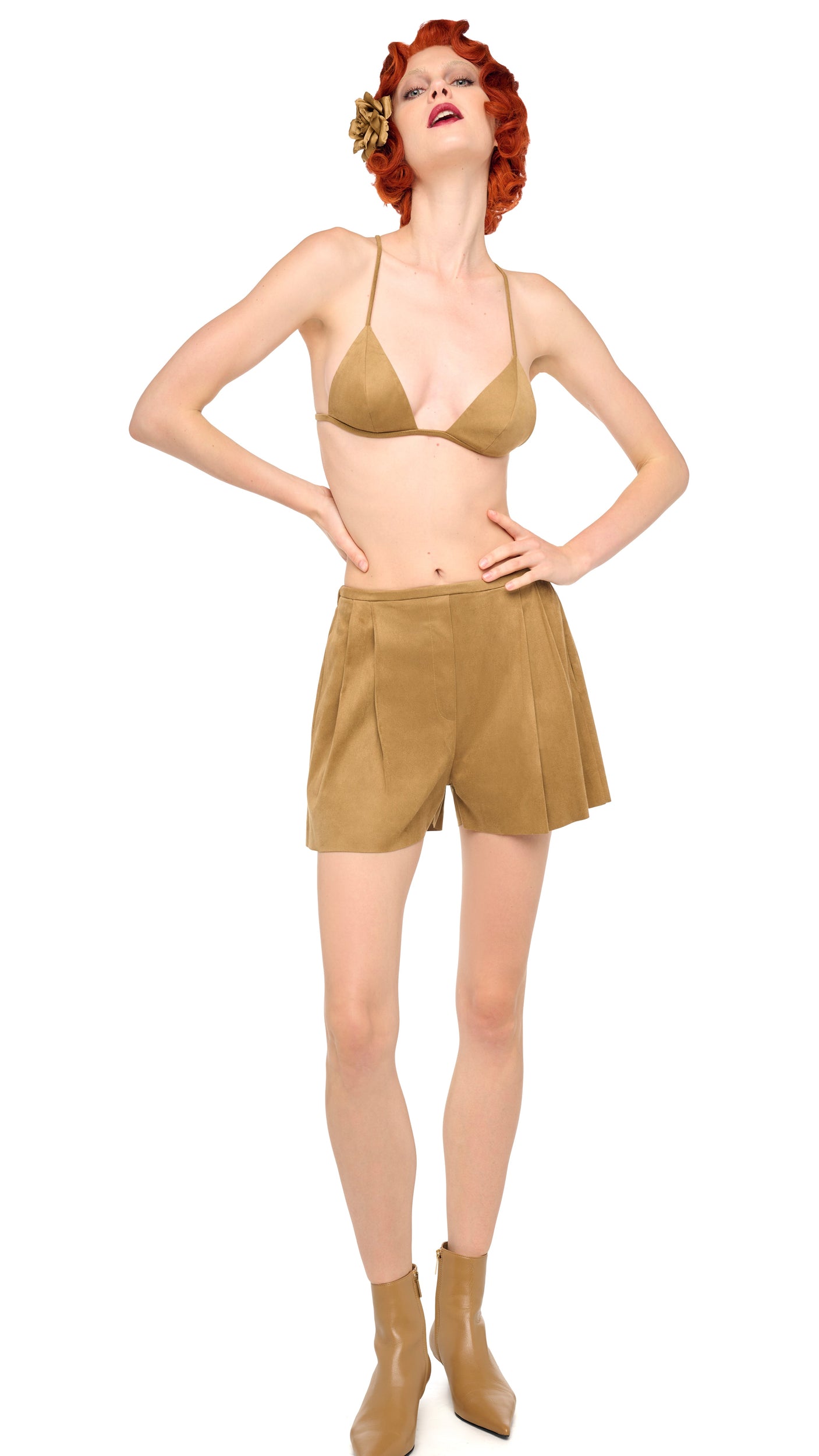 Vegan Suede.Composition: 93% polyester 7% spandex